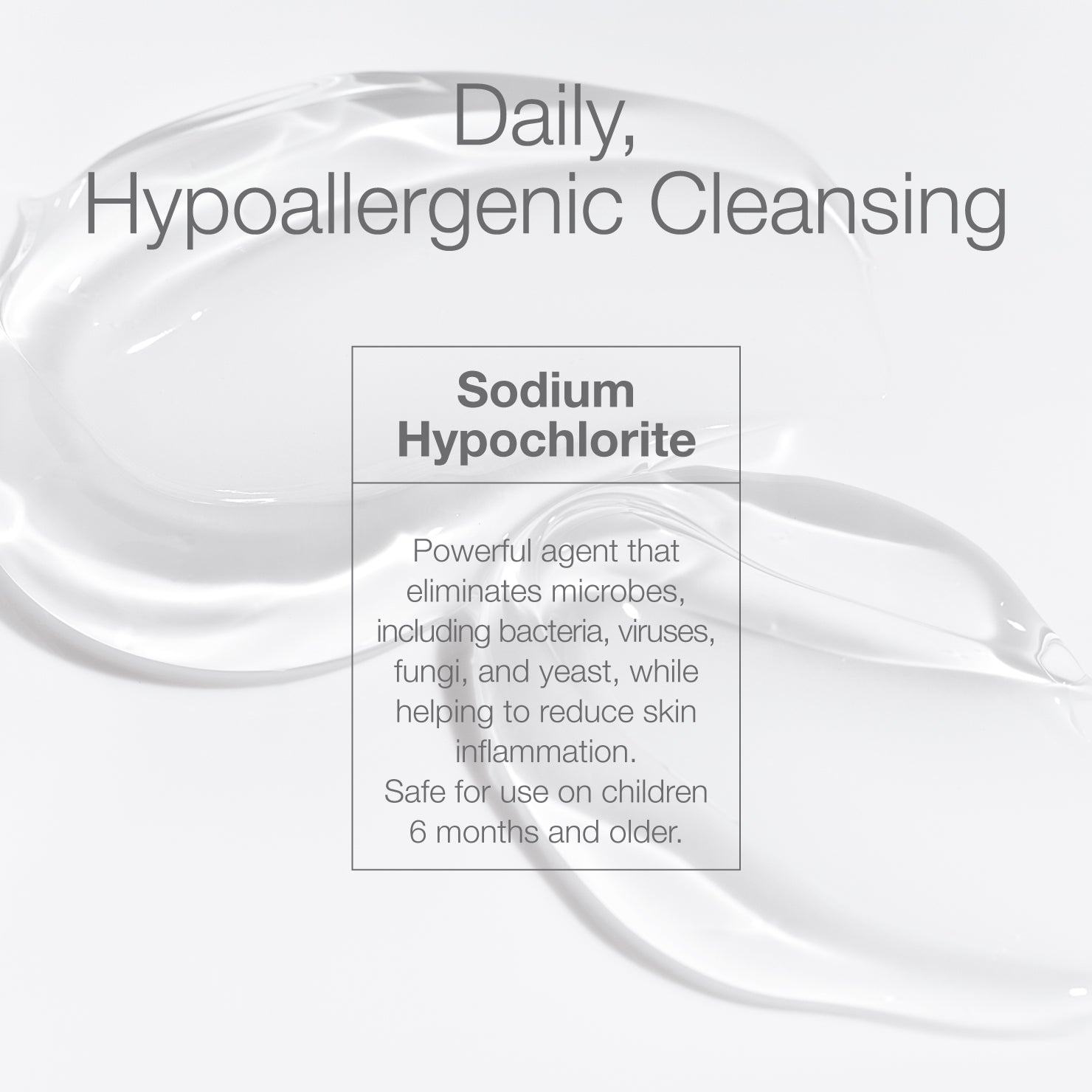 For years, physicians have known that medicated baths can effectively cleanse compromised skin and decrease the spread of infection. However, these baths are unpleasant and impractical. CLn partnered with leading dermatologists to create this sodium hypochlorite wash. It harnesses the most important ingredient of medicated baths in the form of a clinically proven, effective daily cleanser that won’t ruin clothes and is gentle on the skin.