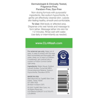 CLn BodyWash is proven to reduce the appearance of skin redness, dryness, and flakiness seen with eczema when used for 2 minutes a day in the shower or bath.