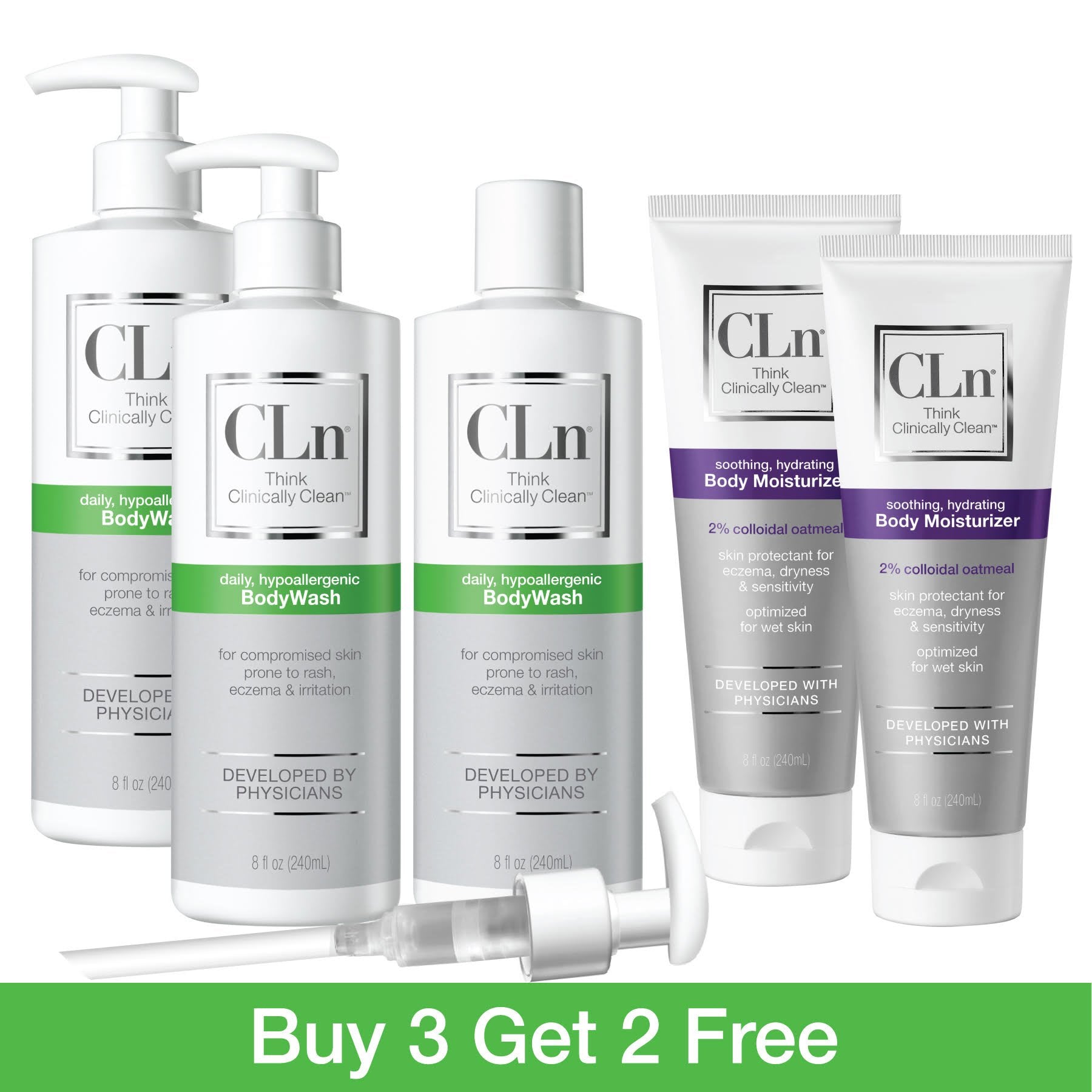 Enjoy 2 FREE CLn Body Moisturizer 8oz with the Eczema Relief Bundle